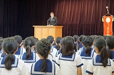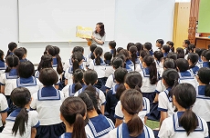 【3年生】講演会「狂言のお話」 創立者・成瀬仁蔵が1919年に行った告別講演を記念して、豊明小学校では3学期に各学年で講演会を実施しています。