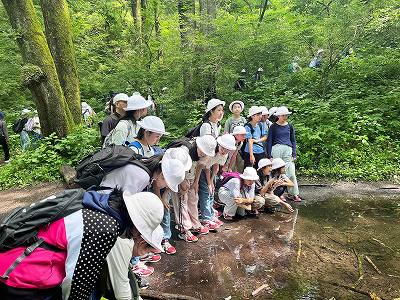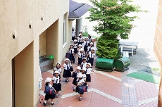 【軽井沢夏の学校】 <6年生:宿泊行事> 日本女子大学・軽井沢三泉寮で、2泊3日の寮生活を行いました。豊かな自然とすがすがしい気候のもと、起床・清掃・食事・学習・遠足・通信(手紙)・日記・就寝などの日常生活を通して、友達や先生といっしょに共同生活を行い、心と体を自らきたえ育てます。