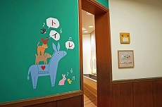【絵の掲示板】 図工室前に「絵の掲示板」があります。誰でも自由に絵を描いて貼ることが出来るスペースです。