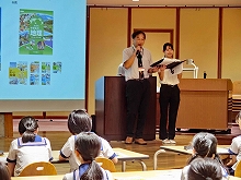 【5年生】音楽「邦楽鑑賞会」 邦楽演奏家の福原千鶴さん(豊明小学校卒業生)、安倍真結さん、藤舎夏実さん、鳳聲月晴さんをお招きして邦楽鑑賞会を開催しました。