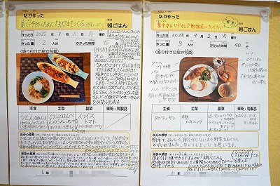 【全学年】「私がつくった朝ごはん」 食育の一環として夏休み中、朝ごはんを自分で作った人にはワークシートに書いて提出してもらっています。
