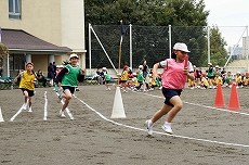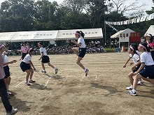 【4年生】スポーツ大会 昨夜までの雨がすっかりあがって清々しい秋風のもと、4年生のスポーツ大会が開かれました。クラス対抗の全員リレーとドッジボールで優勝を競います。