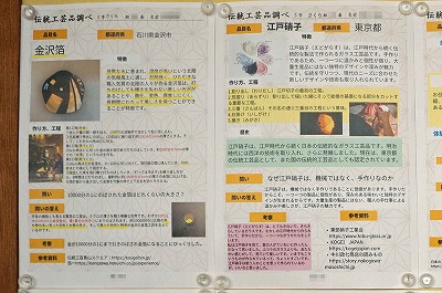 【3・4・5・6年生】社会科「壁新聞で研究発表」 各学年のワークスペースに、子どもたちの研究発表が壁新聞の形式で掲示されていました。3年生は「わたしの住んでいる区や市」、4年生は「都道府県」、5年生は「伝統工芸」、6年生は「歴史上の人物や史跡」がテーマです。身近な地域から日本全国へと空間的に広がって、更に歴史という時間的な広がりへと、子どもたちの視点が拡大していく様子が分かります。