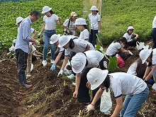 6月17日、西生田キャンパスの農場へジャガイモ掘りに行きました。小学校の畑でもジャガイモを育てていて、ジャガイモの育て方、品種改良、花と葉のつくりなどを学習してきました。西生田農場では、栽培の歴史、収穫量の多い産地とその土地の特徴についてご指導いただきました。