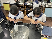【理科】6年生「鉱物の観察」 火山の学習の一環で、火山灰に含まれている鉱物の観察を行いました。