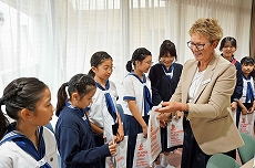 【学園がエデュケーション・ニュージーランドと「教育協力に関する協定」締結】 4月22日(金)にニュージーランド大使館にて、ジャシンダ・アーダーン首相ご臨席のもとに調印式が行われました。数多くの女性リーダーが活躍しているニュージーランドと、創立以来女性の活躍に貢献してきた日本女子大学が、共に歩んでいきたいと願いを込めた協定です。附属校園をふくめ学園全体で国際教育を推進して参ります。 本日の記念として、幼稚園児作成のハンカチーフ、小学校児童作成の五つの訓え、中学校からカードと制服キーホルダー、大学のJWU Waveオリジナルスカーフが、豊明小学校卒業生である中学生・高校生の英語スピーチと共に、アーダーン首相にわたされました。 これから豊明小学校とニュージーランドの子どもたちが交流し、友情を育んでいくことを期待しています。