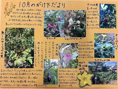 【理科】がけ下だより10月 毎月、がけ下教材園の様子を植物中心に、手書きで1枚にまとめて紹介しています。