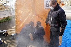 【4年生】防災訓練 夏に「災害時を想定した学校宿泊訓練」を体験した4年生。今回は文京区防災危機管理課のご協力を得て、煙体験ハウスと起震車の訓練を受けました。