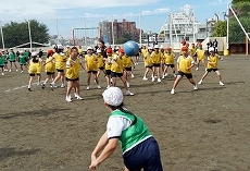 【4年生】スポーツ大会 昨夜までの雨がすっかりあがって清々しい秋風のもと、4年生のスポーツ大会が開かれました。クラス対抗の全員リレーとドッジボールで優勝を競います。