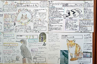 【生き物探求ポスター】 <5年生:理科> 5年生は夏休みの宿題「生き物探究ポスター」で、自分が好きな生き物を一つ選び、それについて調べて、ロイロノートという教育アプリでポスターに仕上げました。9月の授業では、一度提出したポスターをさらに深める活動をしました。 まず自分のポスターを分析し、『特に伝えたいことは何か』をロイロノートのシンキングツールを使って考え、まとめました。そして、それをテーマにプチプレゼン(Vol.14の記事参照)を行いました。聞き手は感想の時間で必ず質問をします。それを数回くり返しました。もらった質問はさらにその生き物について調べるためのヒントになります。それをポスターに反映することで、内容をより深めることができました。 そうしてブラッシュアップされたポスターは、どれも興味深いものに仕上がっています。掲示は植物、軟体動物、節足動物、脊索動物、魚類、両生類、爬虫類、鳥類、哺乳類の順に分類しました。同じ生き物でも人によって異なる視点で書かれていて、その違いからも子どもたちはたくさんの発見をしていました。