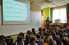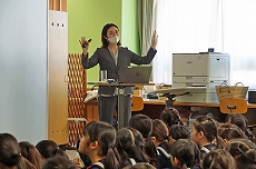 【ニュージーランドホームステイプログラム】「St. Margaret’s Collegeからのお客様」 来年のホームステイプログラム実施に向けて、ニュージーランドの提携校St. Margaret’s Collegeから担当者の方が来校されました。今年の春に参加した6年生も集まって、感激の再会です。来春参加予定の5年生は、なぜ参加しようと思ったのかを英語でスピーチしました。